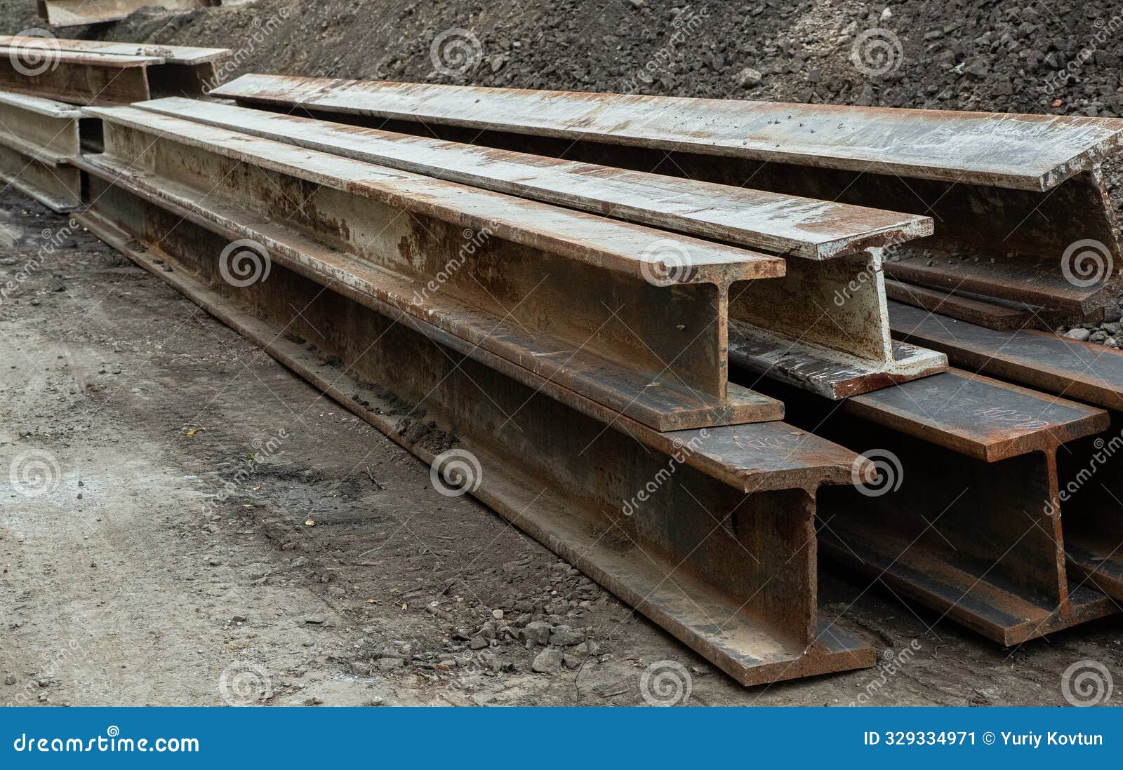 Metal Long Pile Supports Lie Unloaded Construction Stock Image